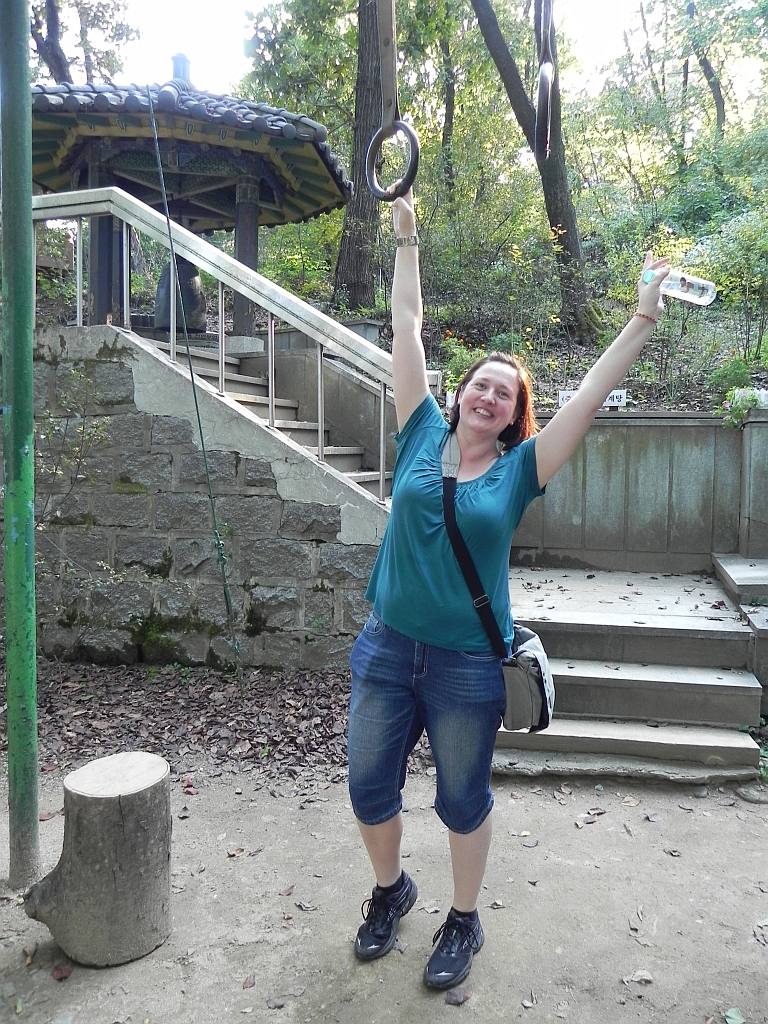 Was wir hier zum ersten (aber nicht zum letzten Mal) gesehen haben, waten die OpenAir-Fitnessstudios, in denen vorwiegend ältere Koreaner tatsächlich trainieren. Diese „Gyms“ sind überall zu sehen und sie werden auch tatsächlich viel genutzt.