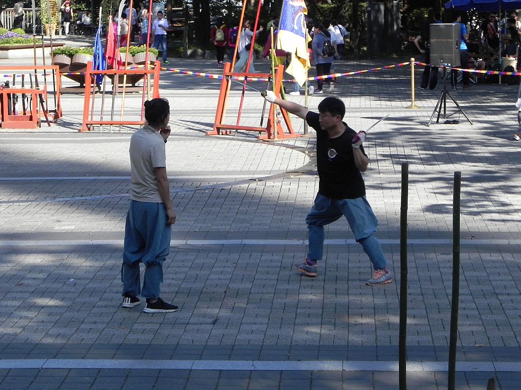 Nach unserem Besuch auf dem N Tower haben wir uns noch etwas oben auf der Spitze des Berges umgesehen. Dort wurden gerade Vorbereitungen für eine koreanische Kampfkunst-Demonstration getroffen.