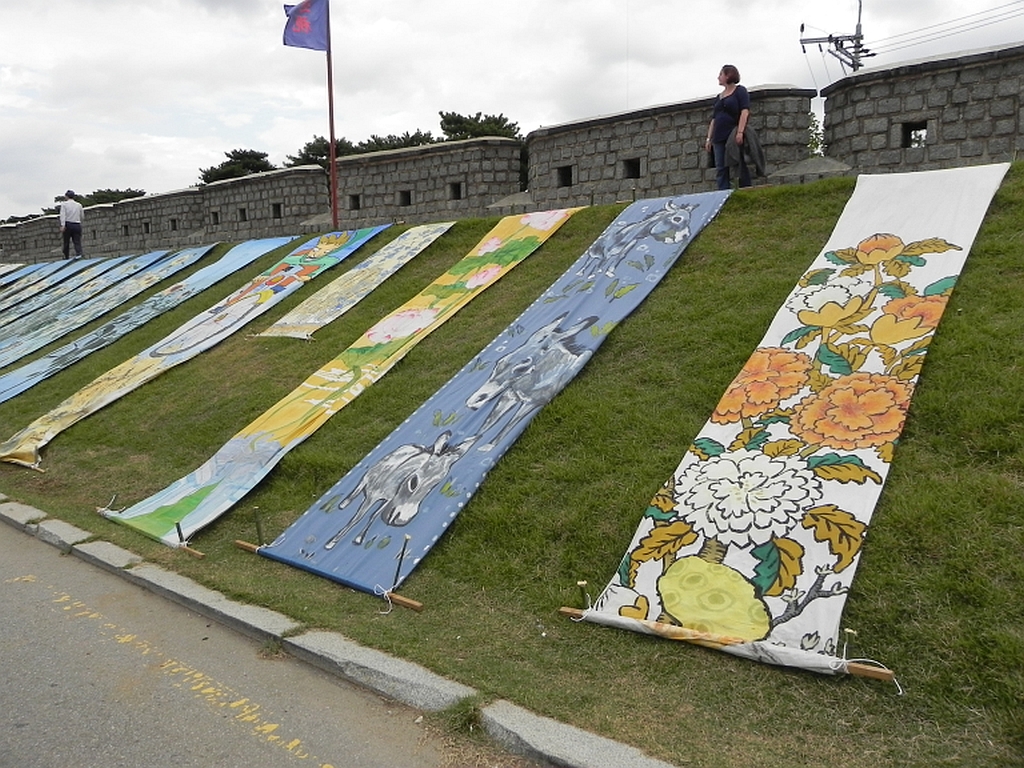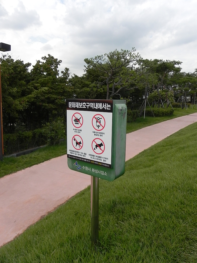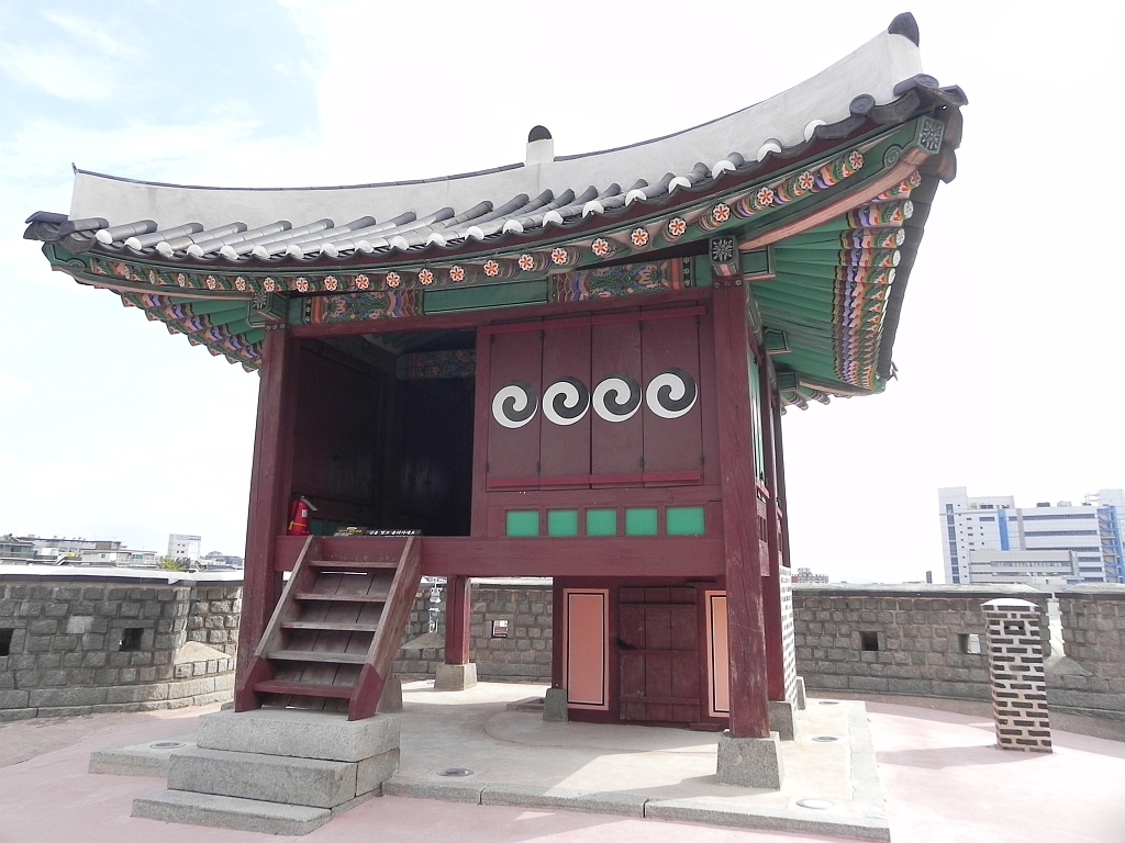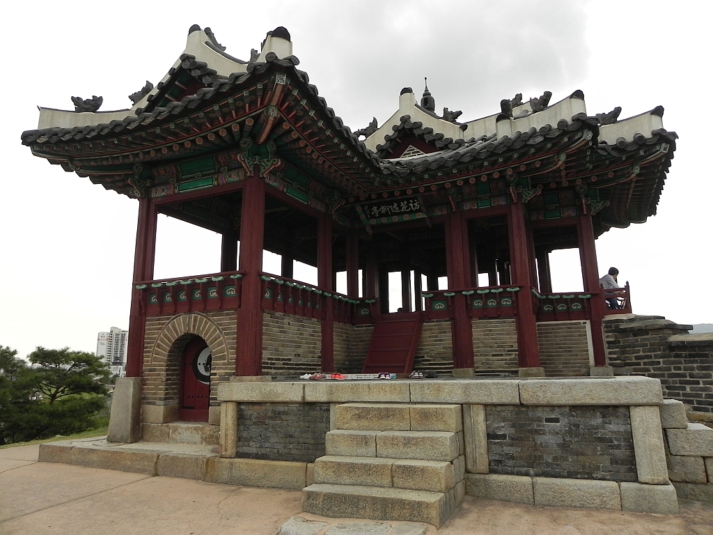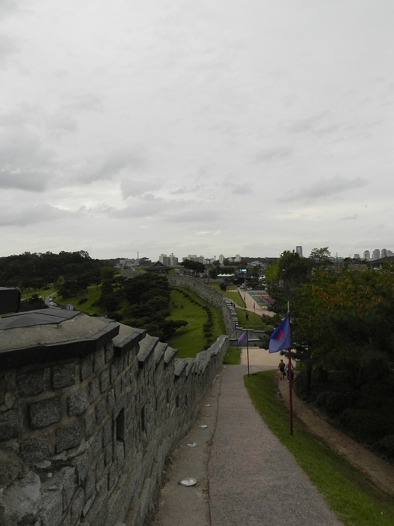 Der Hauptgrund nach Suwon zu fahren ist die Festung Hwaseong. Diese wurde von 1794 bis 1796 von König Jeongjo erbaut und ihre etwa 6 Kilometer lange Mauer umschloß ursprünglich die ganze Stadt. Die Festung wurde während des zweiten Weltkrieges und der Koreakrieges beschädigt aber wieder restauriert und ist seit 1997 UNESCO Weltkulturerbe.