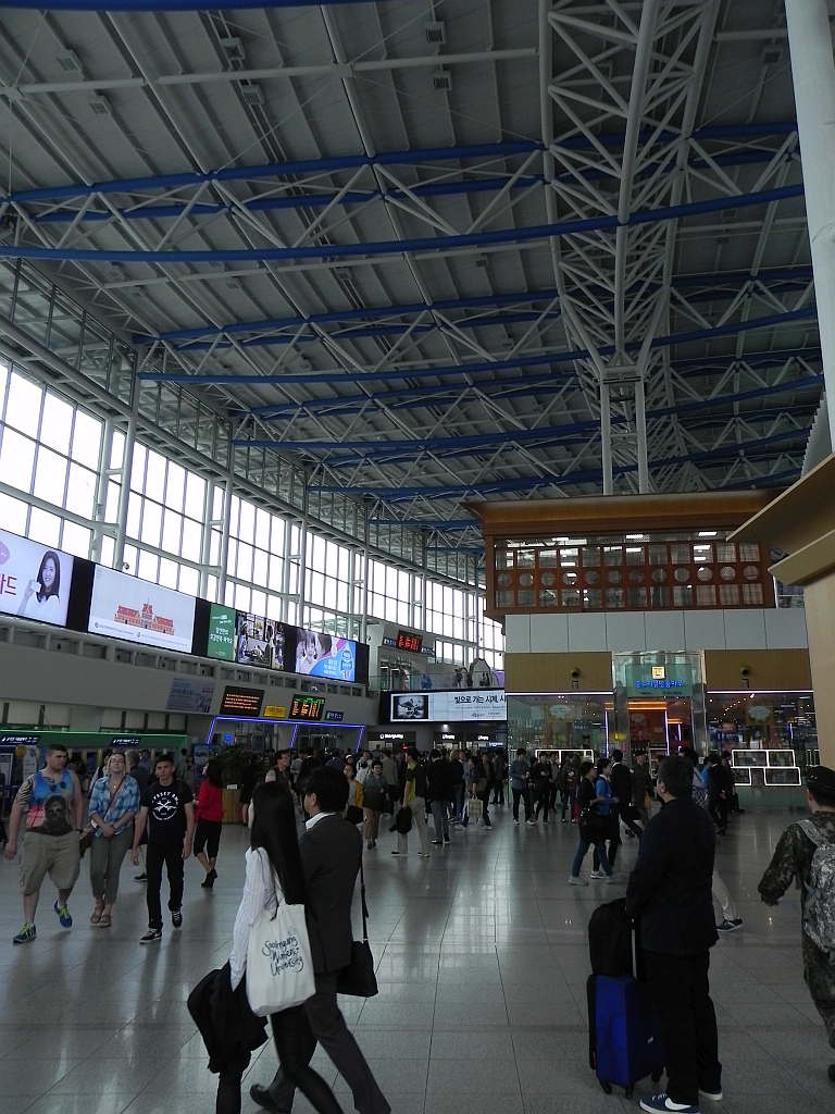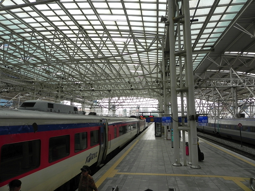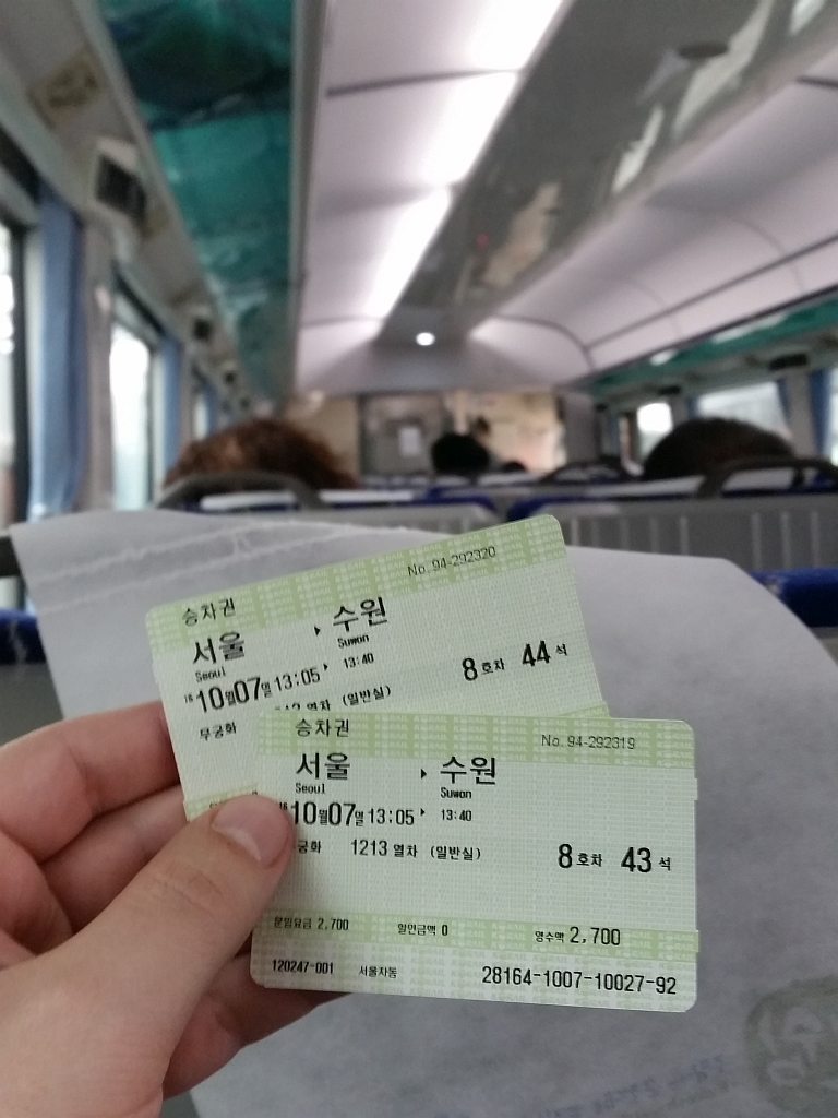Für den Hinweg haben wir uns angesichts des späten Aufstehen für den Nahverkehrszug entschlossen. Dazu sind wir mit der Metro zur Seoul Station gefahren (haben bei der Gelegenheit die Fahrkarten für die nächsten Tage geholt) und haben ein Ticket gekauft.