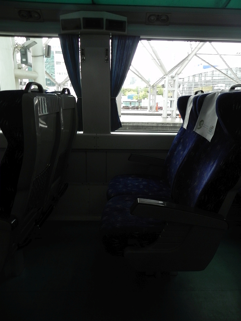 Wir dagegen fahren nur die ersten 35 Minuten mit. Der Zug hat außerdem als Besonderheit einen Speisewagen und … Stehplätze. Richtig gelesen: Es werden Stehplatzkarten verkauft. Was für eine nicht so tolle Art zu reisen … dann doch lieber einen Sitz.