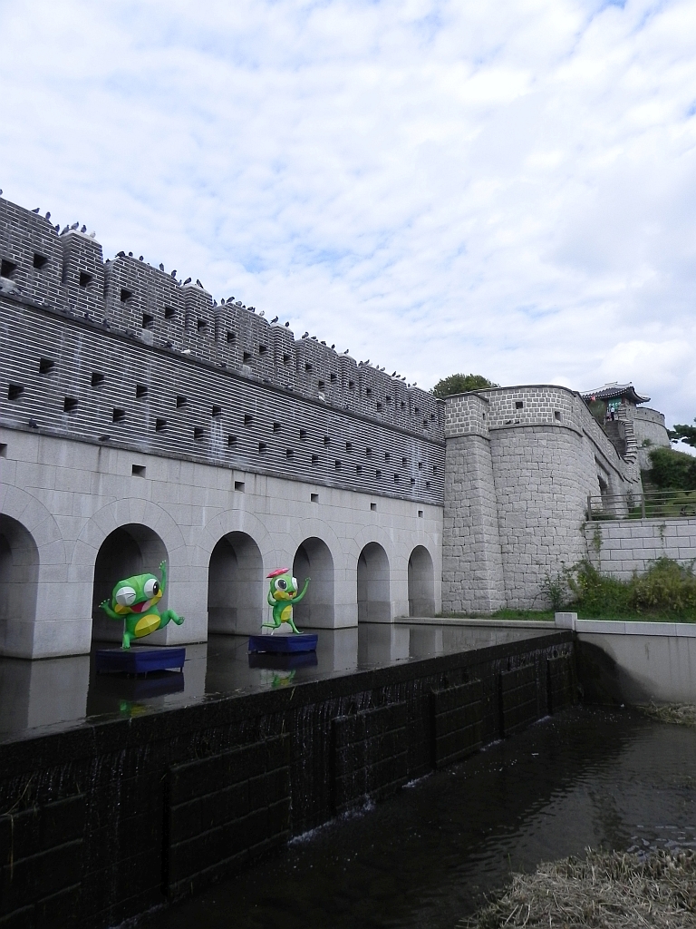 Die beiden Frösche vor dem Tor sind übrigens Teil des Suwon Laternen-Festivals, welches mit vielen Laternen auf besagtem Fluss stattfindet.