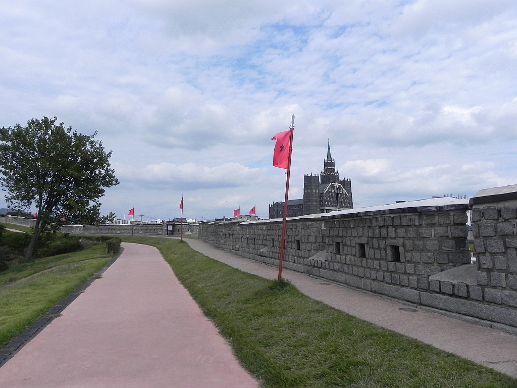 Neben der damaligen Stadt hat sich Suwon heute natürlich wesentlich weiter ausgedehnt. Auch eine der größten Kirchen des Landes steht direkt in Sichtweite der Mauer.