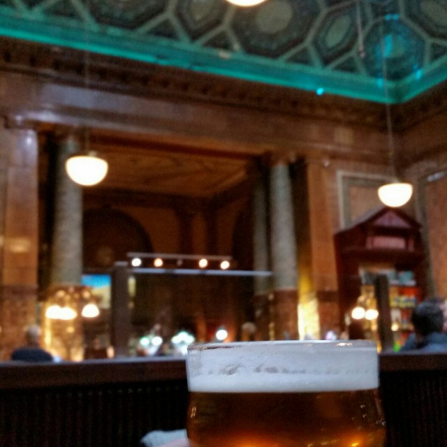 Am Bahnhof angekommen haben wir uns erst einmal Bargeld geholt. Danach hatten wir noch eine gute Stunde bis unser Zug nach Edinburgh abfährt, also haben wir uns einen schönen Platz zum Warten ausgesucht: Den 1839 erbauten ehemaligen Wartesaal 1. Klasse . (Jetzt ein Pub).