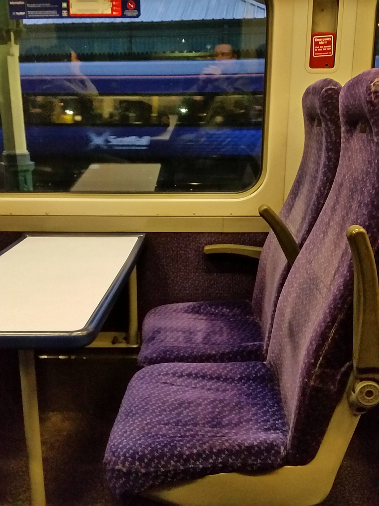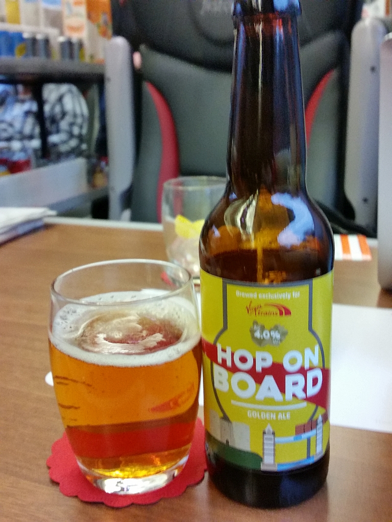Im Zug selber hatten wir sehr bequeme Plätze für die 1,5 Stunden dauernde Fahrt nach Edinburgh. Dabei gab es auch noch eine Kleinigkeit zu essen und was zu trinken. Analog SAS (die ja eigene Biere von Mikkeller ausschenken) hat Virgin Trains ein eigenes Bier. Gar nicht man so schlecht.