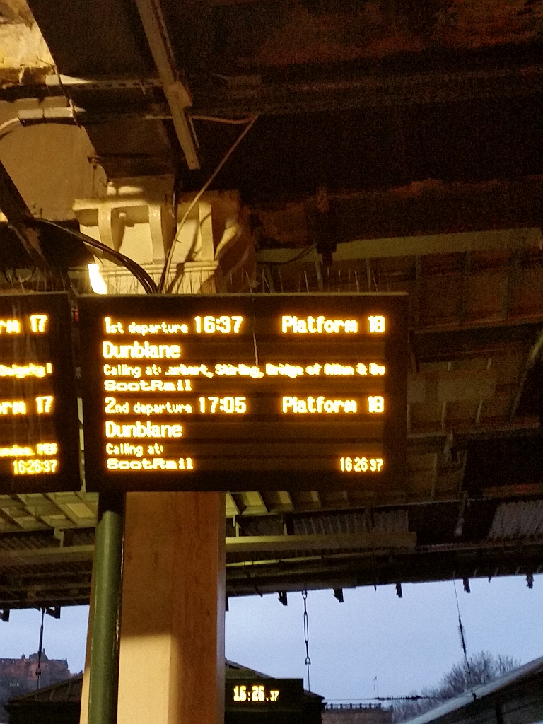 Pünktlich kamen wir in Edinburgh an und nahmen die letzte Etappe unserer Reise in Angriff: Mit einem Zug von Scotrail zwei Stationen nach Edinburgh Park. Durchaus machbar …