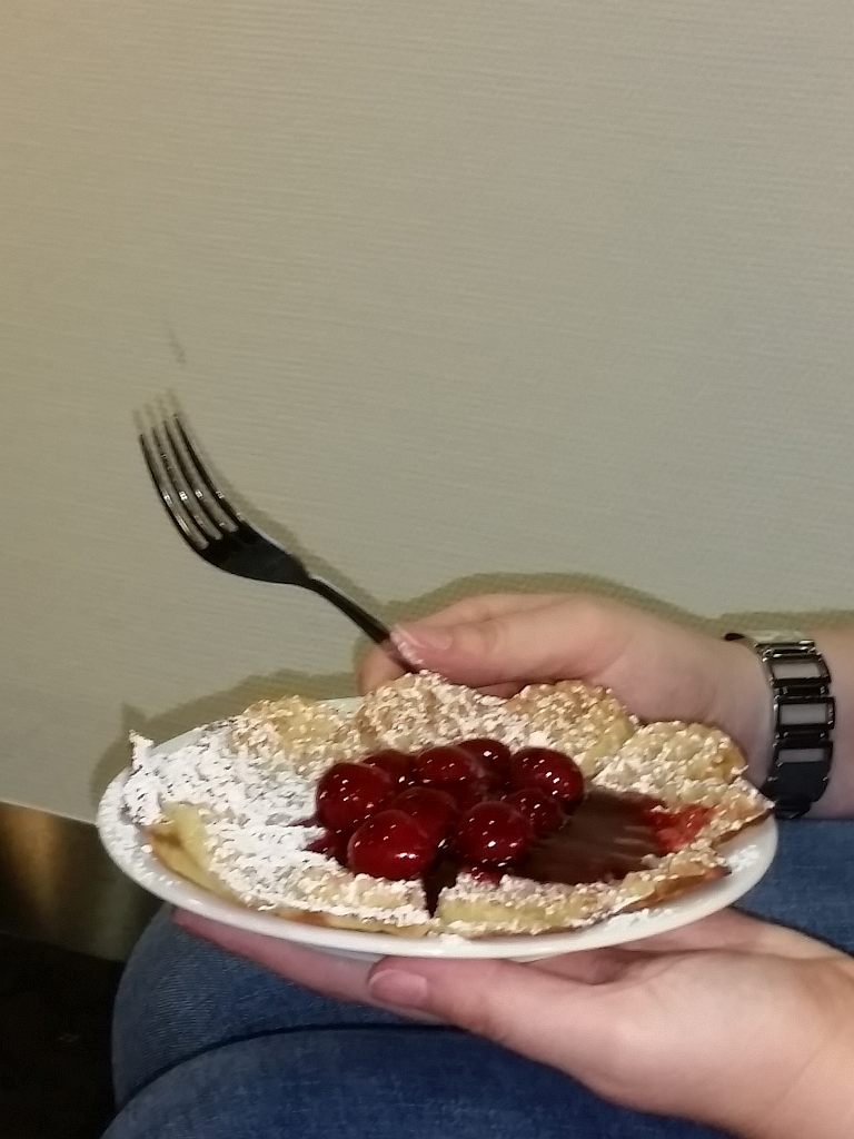 Vorteil war dann, dass wir in die Lufthansa Senator Lounge gehen konnten. Weiterer Vorteil: Es gab einen Waffelstand in der Lounge …