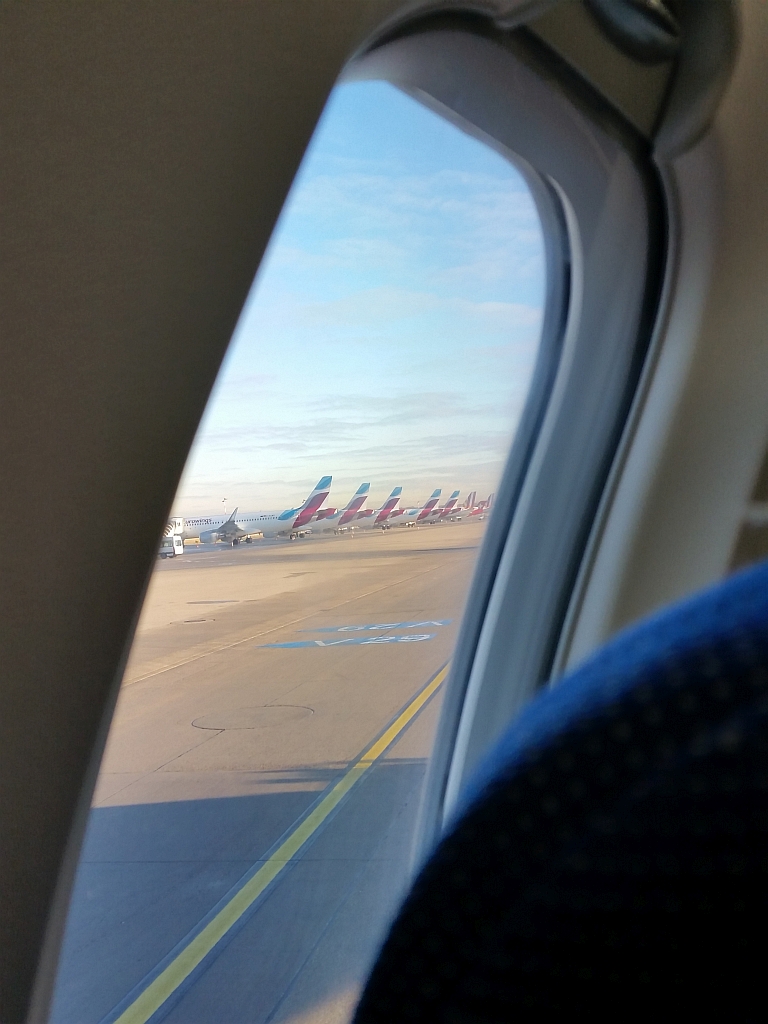 Auf dem Weg zur Startbahn ging es dann den ganzen Eurowings Flugzeugen vorbei … echt viele davon.