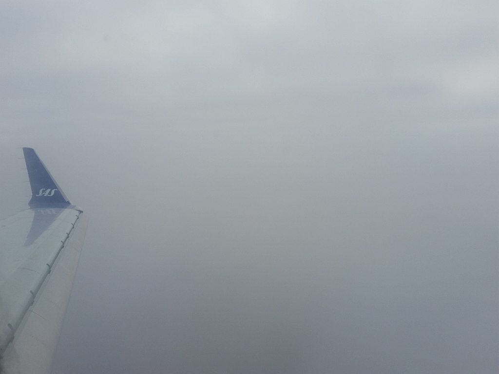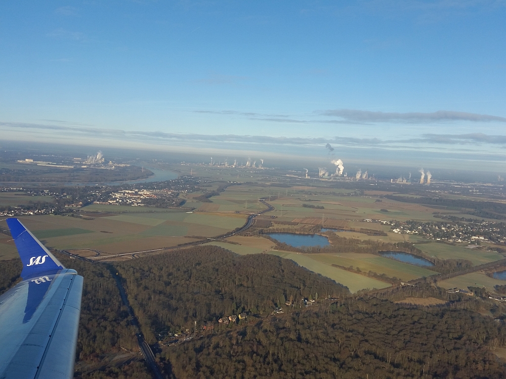 Nach etwa 1 Stunde Flug begann der Anflug auf Kopenhagen, die Sicht war allerdings etwas getrübt …