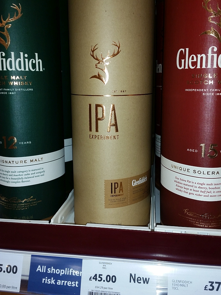 Interessant war, dass es jetzt sogar von Glenfiddich die ersten Versuche mit IPA-Fass-Finish gibt. Im Tesco.