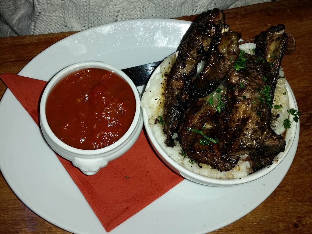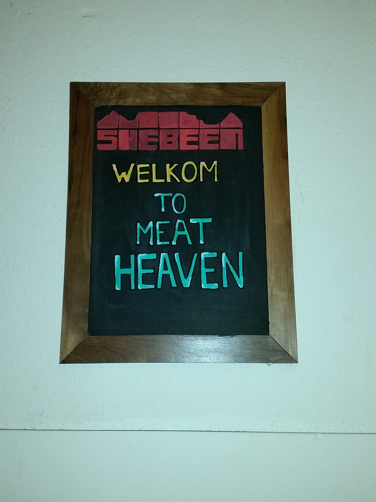 Als Alternative sind wir dann auf dem Hotelzimmer eingeschafen, haben uns aber entgegen unser sonstigen Faulheit auch wieder auf gemacht. In der Nähe des Hanging Bat haben wir ein südafrikanisches Restaurant entdeckt und im Urlaub sind wir ja generell experimentierfreudig. Also hin mit uns!