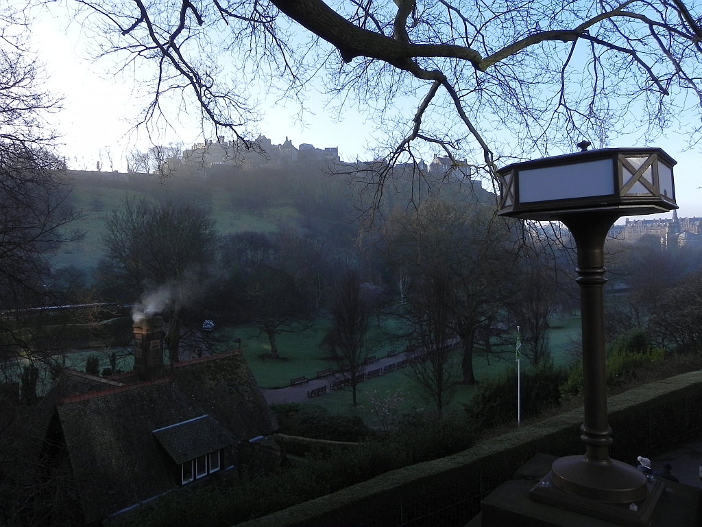 Das Wetter war … schottisch. Allerdings macht das ja ab und an auch den Charme der Gegend aus. Erst recht, wenn man beim Umsteigen an der Weaverly Station solche Blicke auf das Castle und die Castle Terraces erhält: