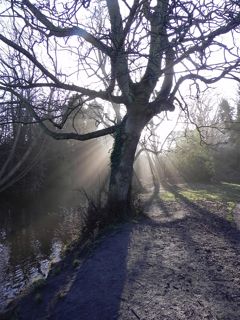 An der Stelle des letzten Fotos war allerdings etwas mehr Action zu sehen. Ein Paar Schwäne mischte eine Gruppe Enten auf, eine der Enten floh sogar auf einen Baum.
