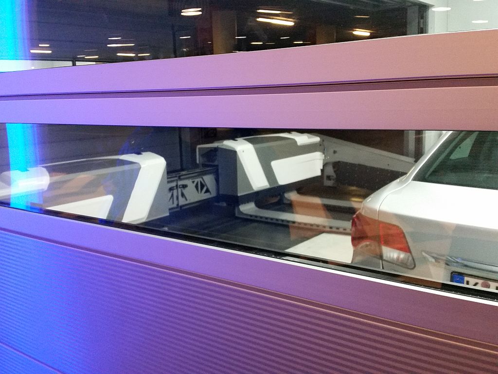 Also ging es Donnerstag gaaaaaanz früh nach Düsseldorf – die A3 war überraschend leer und so sind wir zügig am Flughafen angekommen. Dort haben wir diesmal einen besonderen Parkplatz gebucht: In Düsseldorf gibt es nämlich einen Parkroboter. Man fährt in eine „Übergabebox“, steigt aus und holt alle Sachen aus dem Auto. Dann drückt man auf einem Touchscreen ein paar Knöpfe, die dem System zeigen, dass das Auto geparkt werden kann.