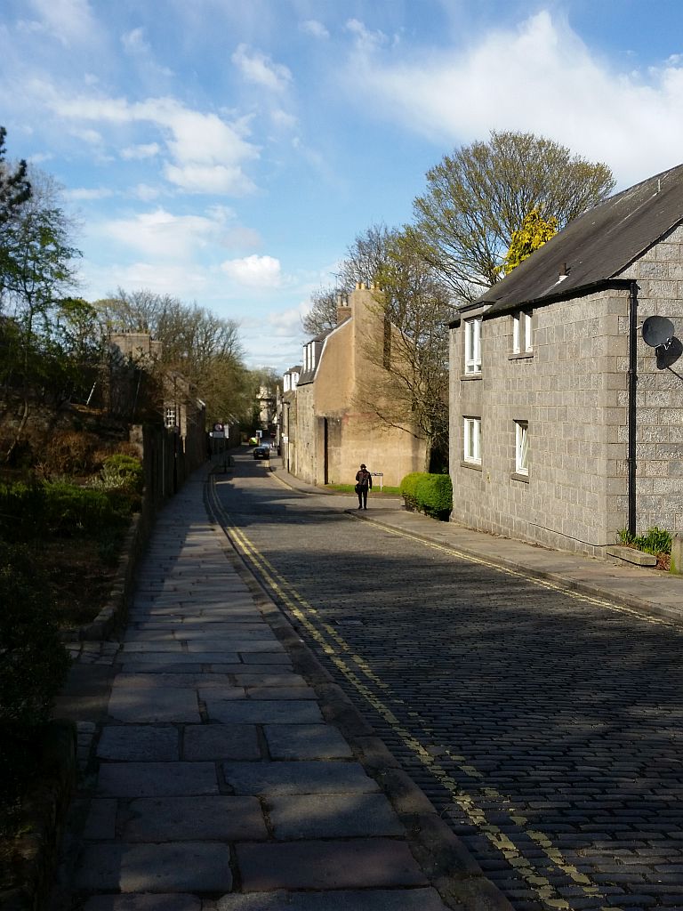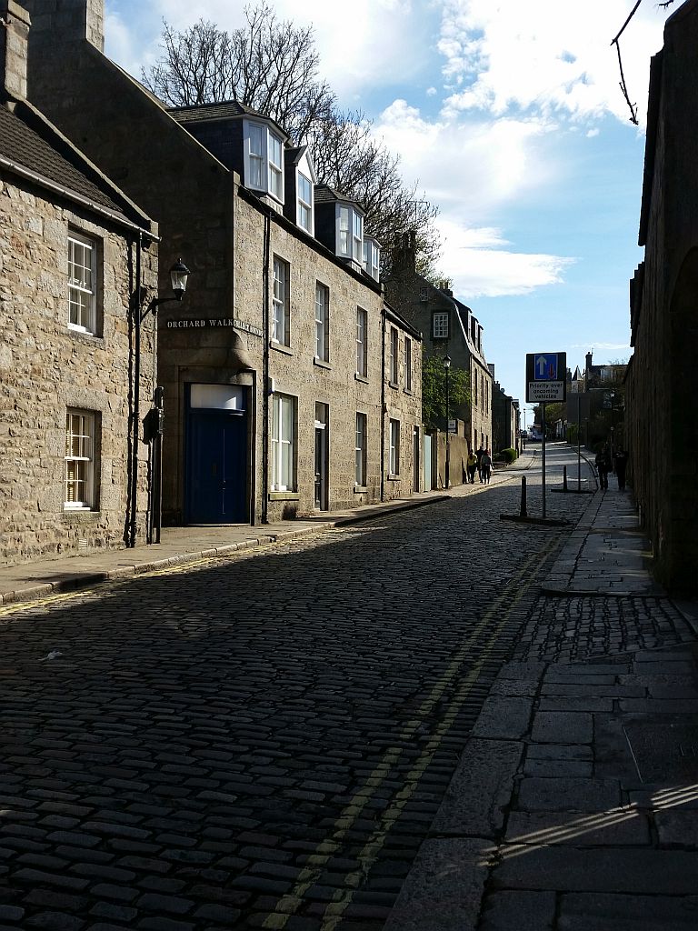 Per SMS haben wir uns in „Old Aberdeen“ verabredet, einem Stadtteil, der für die im ursprünglichen Stil erhaltenen Strassen und Häuser bekannt ist. Ausserdem für die Universität, die dort einige Gebäude unterhält.