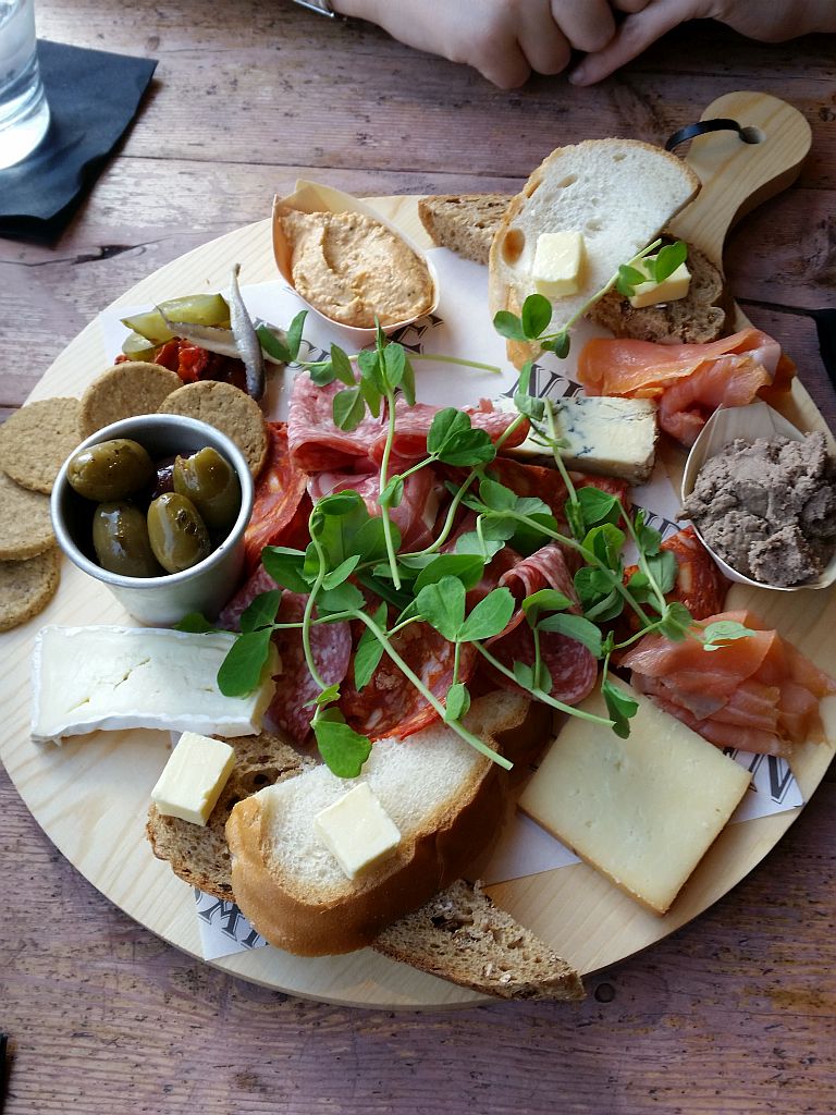Neben dieser opulenten Vorspeisenplatte gab es noch einen leckeren Lamm-Burger und eine Portion Nachos mit Pulled-Pork. Dazu ein paar nette Biere und die Info, dass der Inhaber und Kellner ebenfalls zur AGM gehen wird. Auf Brewdog sind hier schon einige Leute sehr stolz.