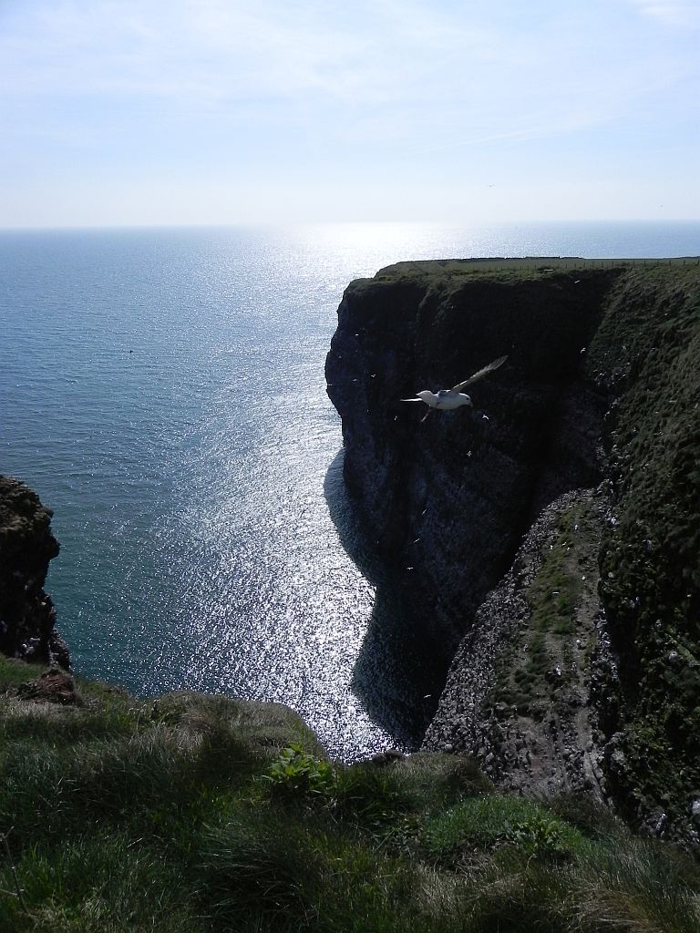 Fowsheugh, ein Reservat des RSPB (Royal Society for the Protection of Birds). Dort sollen sich im Frühjahr immer viele Papagaientaucher befinden. Vorneweg: Leider waren (noch) keine hier zu sehen.