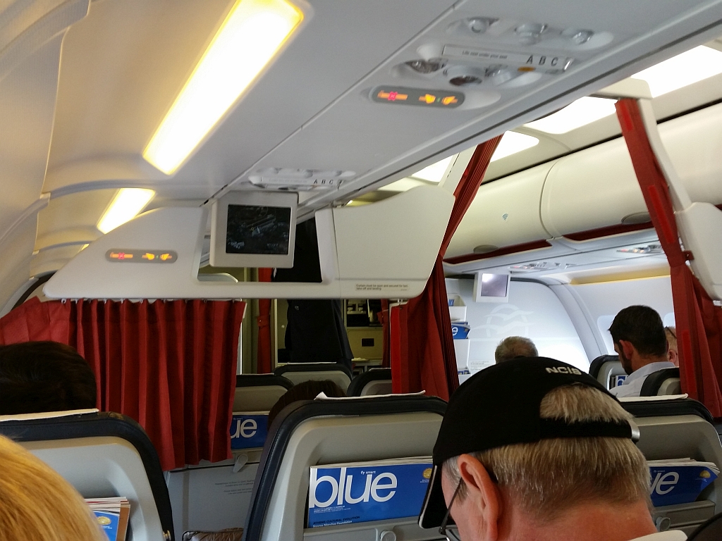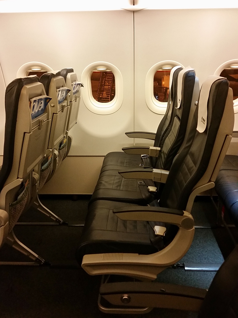 Unsere Plätze in der Reihe 5 waren passabel und aufgrund des vollen Fliegers auch gut für das Aussteigen. 3 Stunden Flugzeit waren aber schon etwas nervig gegen das Ende hin.