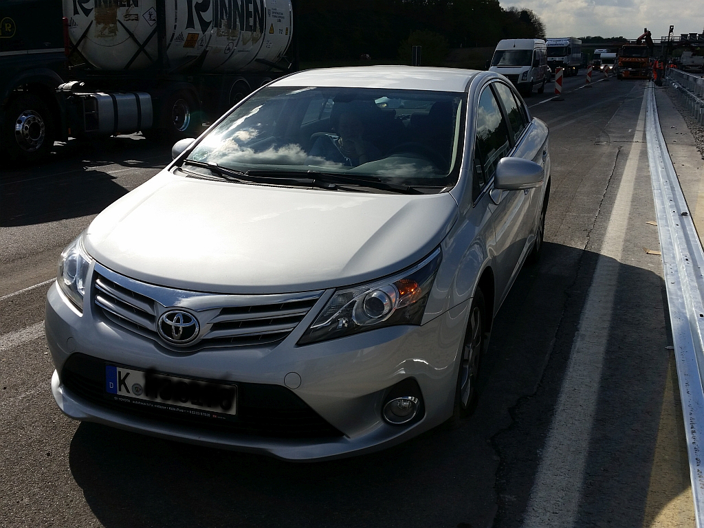 Wer die A3 in Richtung Oberhausen kennt, weiss das sich dort Baustelle an Baustelle reiht. Und in der ersten fuhren wir auf der linken Spur an einer Baustelle kurz vor Leverkusen vorbei, wo Leitplanken montiert wurden. Nach der Baustelle standen wir dann da: