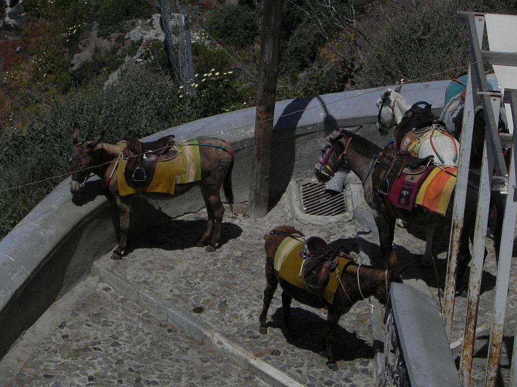 Am Ende des Ortes kam dann Fira in Sicht – hier legen die Kreuzfahrtschiffe an und hier entstehen auch die berühmten Bilder mit dem Eseln, die die Kreuzfahrtpassagiere eine Serpentinen-Strasse die Caldera-Wand hoch tragen.
