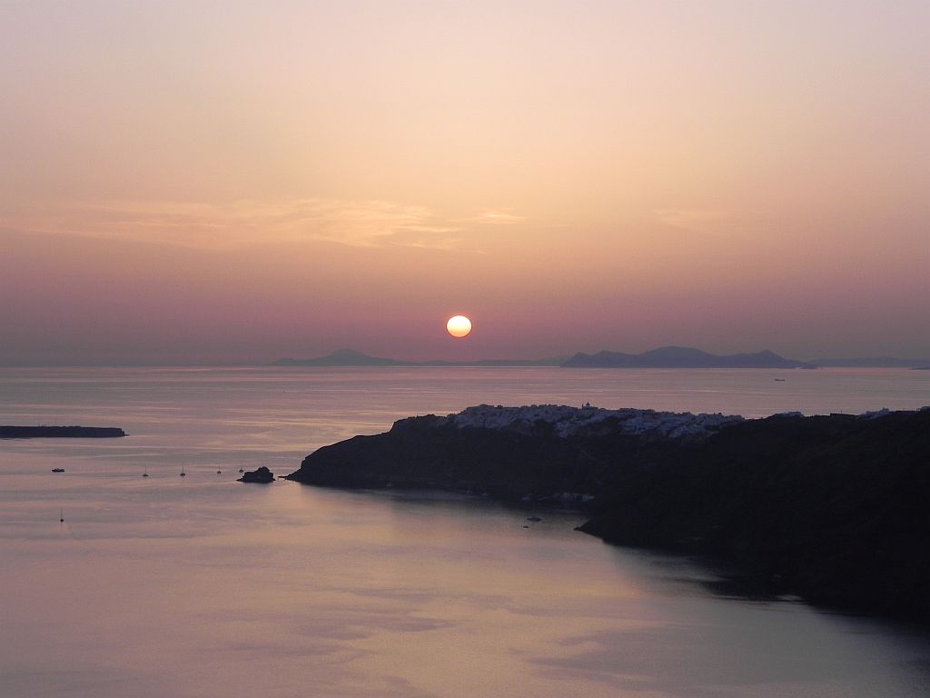 Der Grund, weswegen viele Leute nach Santorini kommen ist nämlich der viel-beworbene Sonnenuntergang. Und selbigen konnten wir von unserem Balkon bestaunen – was wir mit einem „Feierabendbier“ in der Hand auch getan haben.