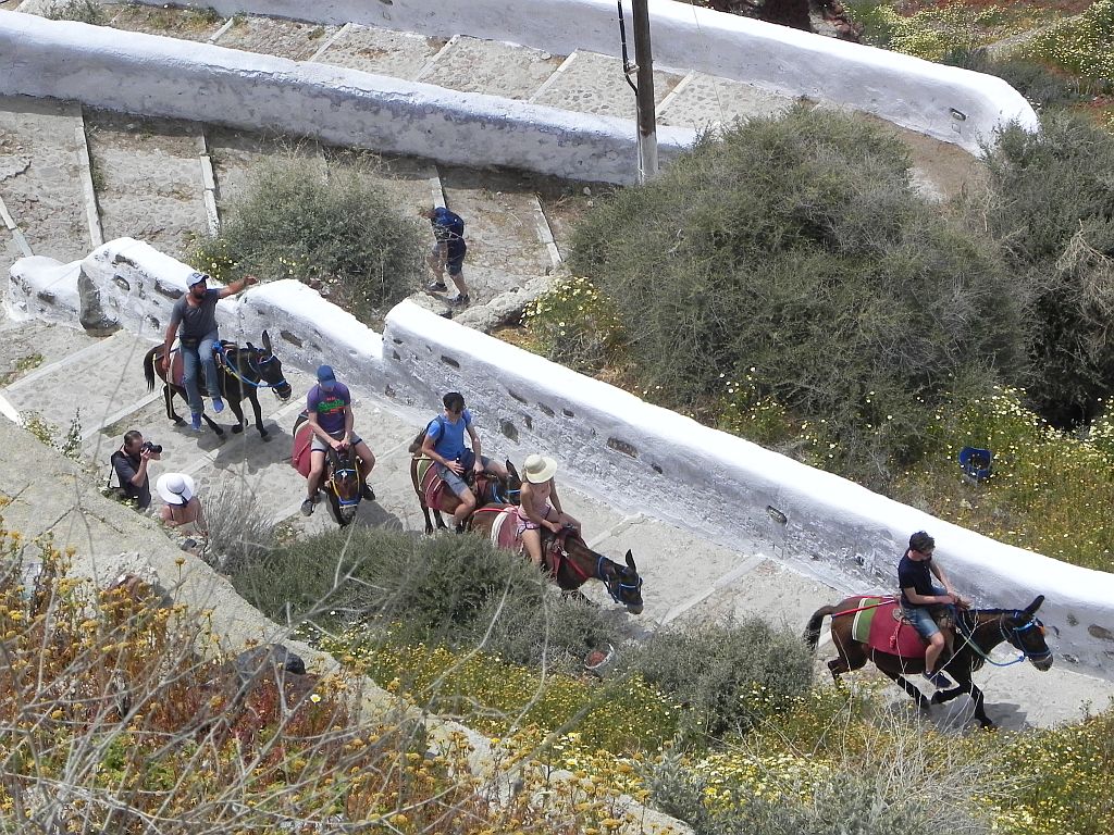 Sowohl künstliche, als auch richtige. Die lebendigen Esel werden auch hier zum Transport vom kleinen Hafen von Oia zum Dorf eingesetzt, da Oia etwa 70 bis 100 Meter über dem Meeresspiegel liegt.