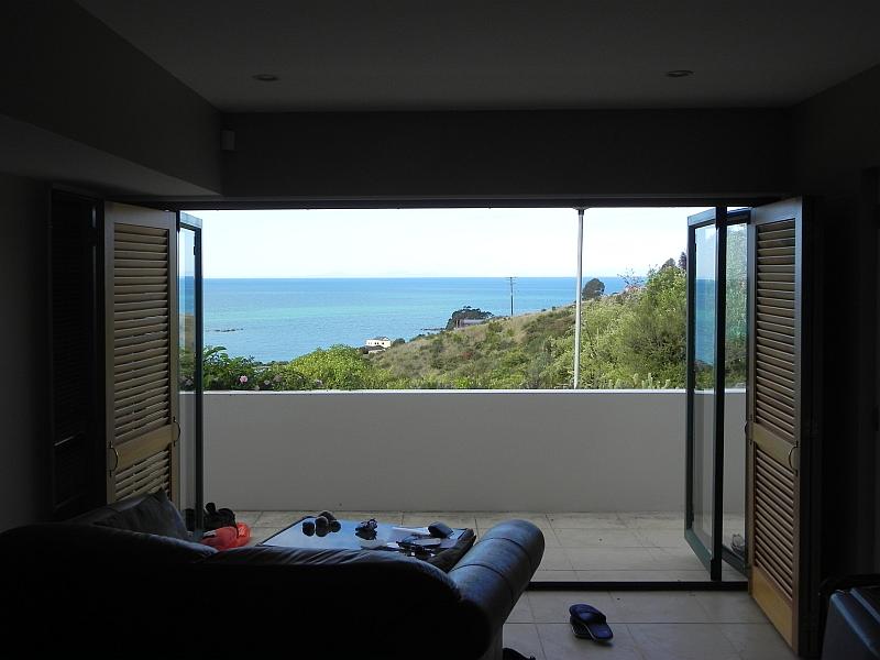 Nach einer weiteren Stunde Fahrt sind wir dann in Kaiteriteri angekommen, wo wir von Jude und Paul in ihrem Bayview B&B Willkommen geheissen wurden. Und das ist der Ausblick aus unserem Zimmer: