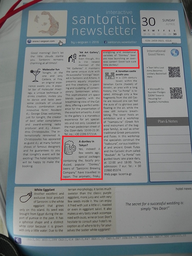 Tanoshinde kite ne, cute little donkey Veröffentlicht am 28. Mai 2017 Heute morgen in dem kleinen „Newsletter“, der während des Frühstücks immer in unser Zimmer gelegt wird. Veröffentlicht in 2017 Santorini 2017CraftbeerGriechenlandSantorini Vorheriger Beitrag Der Weg zurück zum Hotel (inkl. Umwege) Nächster Beitrag Letzter Tag auf der Insel