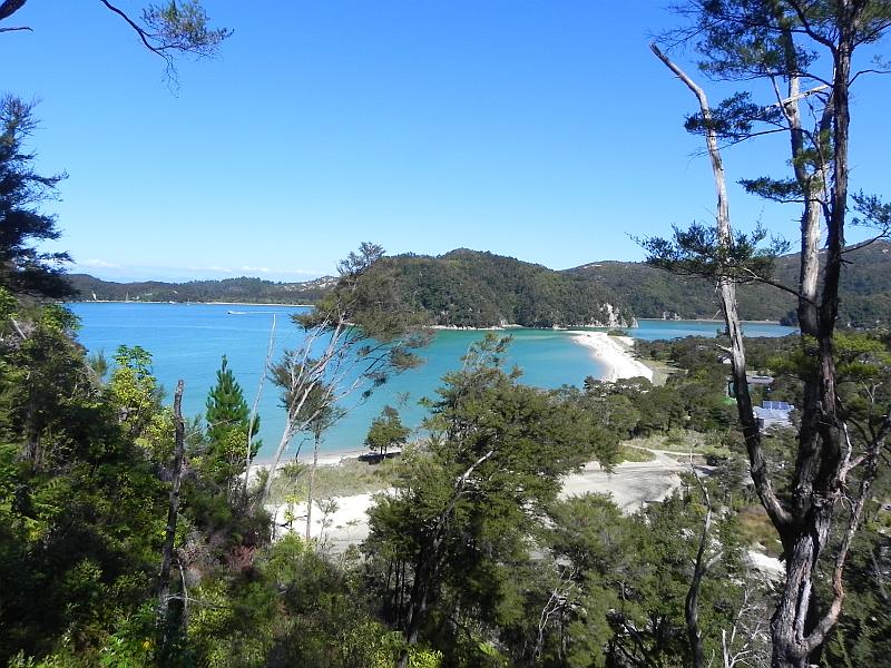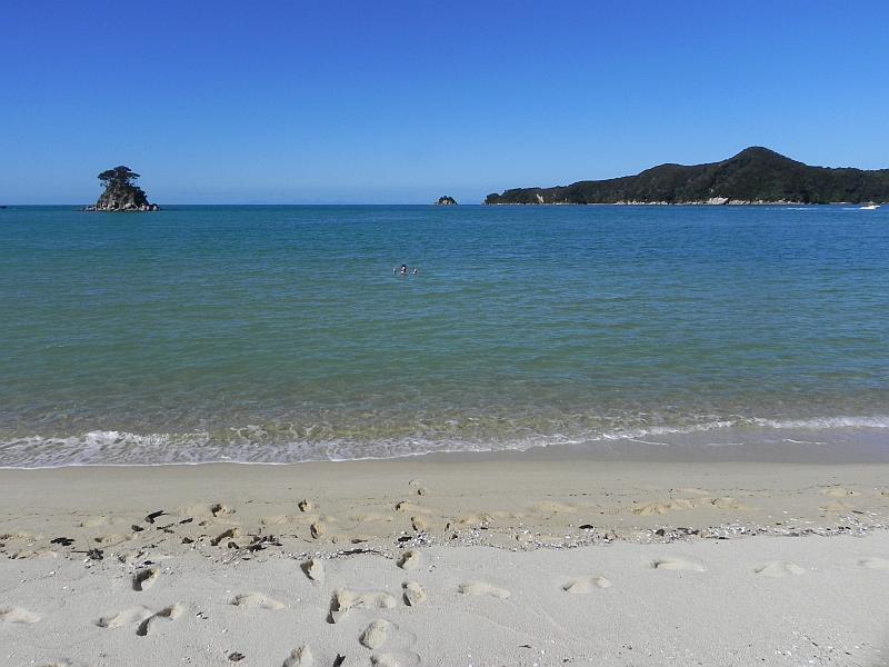Der ganze Weg war recht schön, auch wenn sich noch einige Wehwehchen (Blasen, etc.) von der Alpine Crossing bemerkbar gemacht haben. Aber in der Sonne geht das ja eh alles viel besser (ja ihr neuseeländischen Wetterfrösche, IMMER NOCH SONNE! UND WARM!). Links vom Weg hat man immer wieder das Meer oder sogar eine kleine Bucht oder man ging eben durch den Nationalpark mit seiner ursprünglichen Vegetation. Sehr schön! Da wir auch gut vorankamen, sind wir auch recht zeitig an unserem Ziel, Torrent Bay, angekommen.