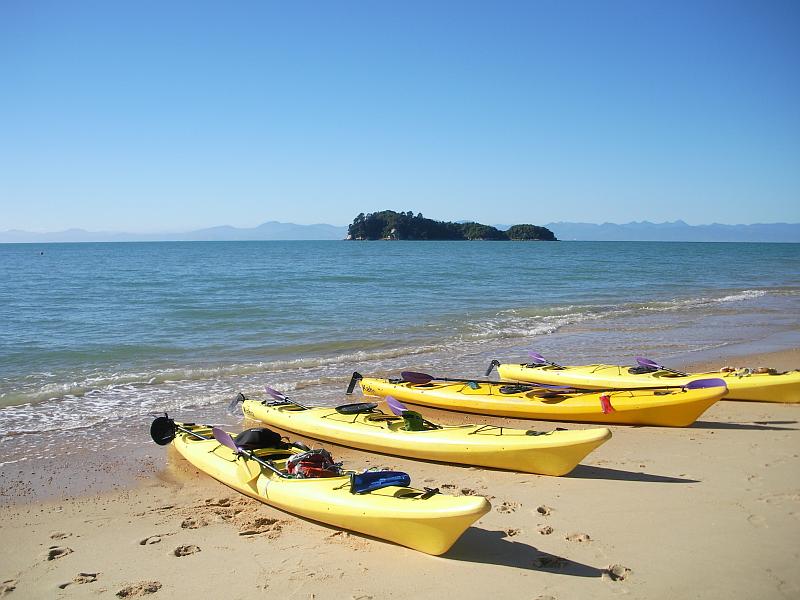 So, gerade geht die Sonne auf und über uns hören wir schon, wie das Frühstück zubereitet wird. Heute geht es in den Abel Tasman N.P. zur sogenannten „Swingers Delight“-Tour von Kahu Kayaks.