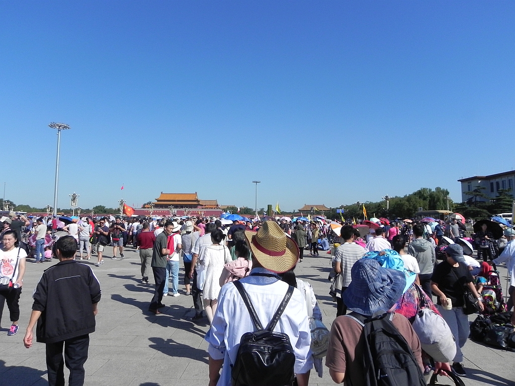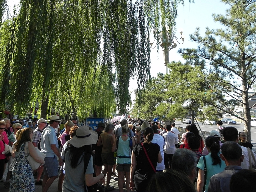 Der erste Programmpunkt wurde mit den Worten „Da ist es dann noch etwas leerer …“ eingeleitet: Der Platz des himmlischen Friedens oder auch Tian´anmen Platz. Unser Fahrer fuhr uns zu einer Nebenstrasse von der aus wir uns in Richtung des Platzes aufgemacht haben.