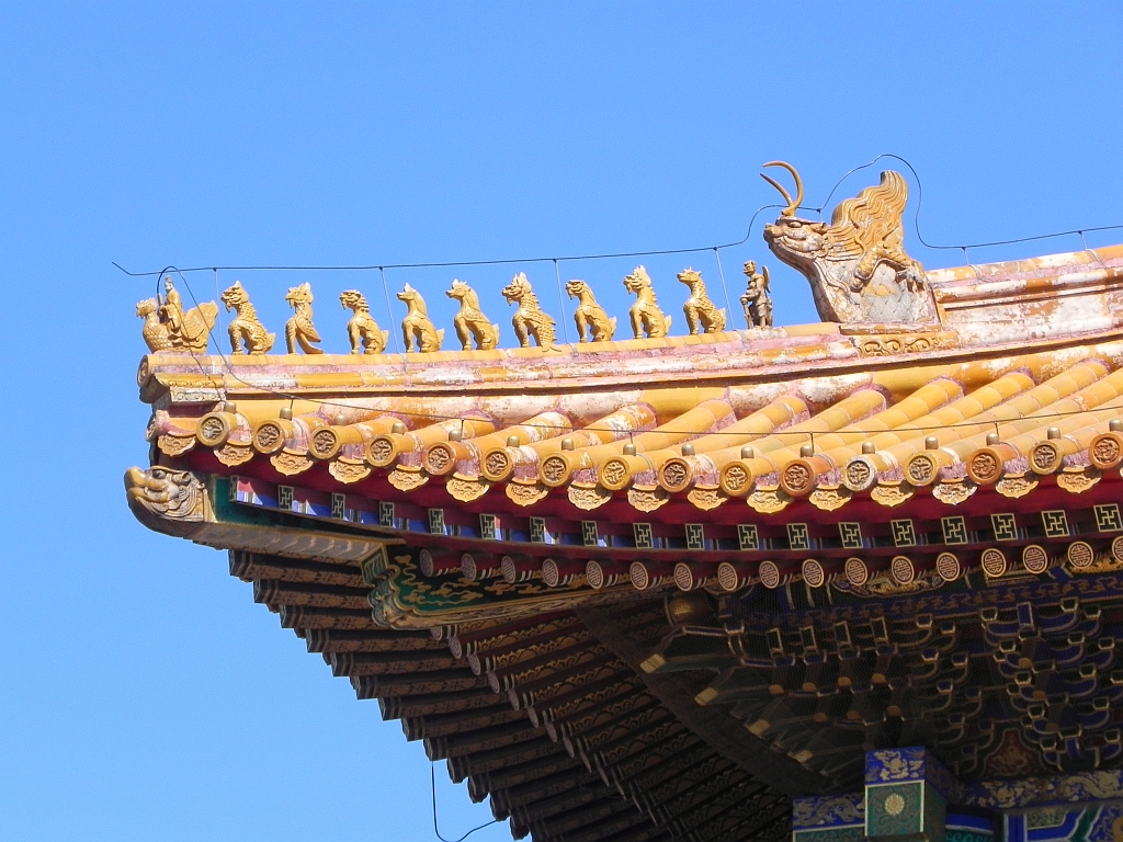 Die Dächer waren in der Regel vergoldet und mit in Gelb lasierten Ziegeln gedeckt – Gelb ist die Farbe des Kaisers.