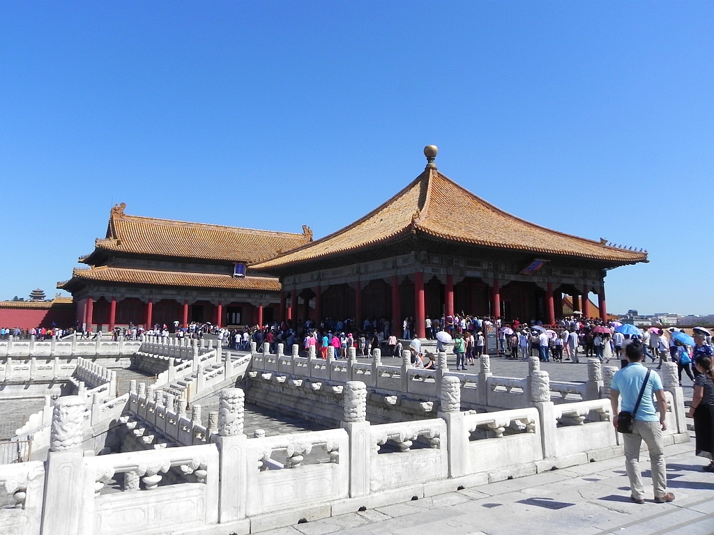 Die Verbotene Stadt stellt ein Meisterwerk der chinesischen Architektur dar. Ihre Anlage entsprach dem Prinzip von Yin und Yang: Alles an einer Achse ausgerichtet und gleichmäßig verteilt. In der Mitte waren die Gemächer von Kaiser, Kaiserin und des Hofstaates.