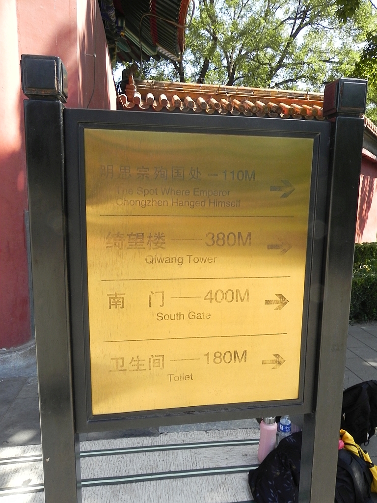Für den Fall, dass man eine Toilette, das Süd-Tor, einen Turm oder „Den Ort Wo Sich Kaiser Chongzhen Erhängt Hat“ sucht: Es ist für alles gesorgt …