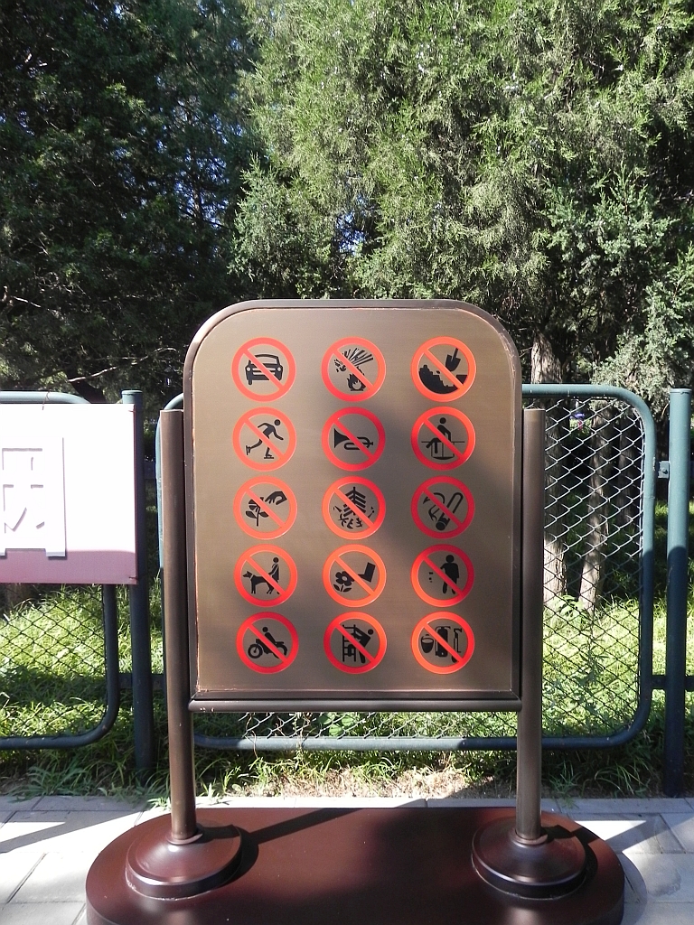 Warum man hier allerdings nicht auf eine Leiter steigen darf (Mittlere Reihe ganz unten) und wieso Trompeten verboten sind (Mittlere Reihe, 2. von oben) konnte selbst unser Guide nicht beantworten … 😉