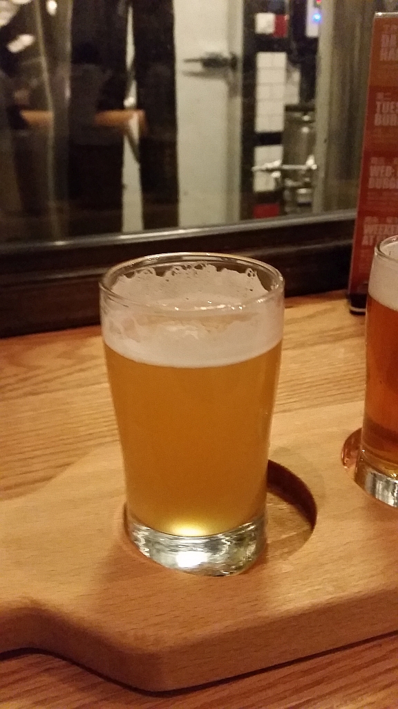Wir haben noch einen Platz mit Blickrichtung Brauraum ergattert und uns dann quer durch die Karte getrunken.