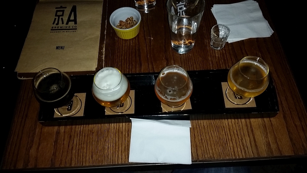 Am Nachbartisch saß ein chinesisches Pärchen, welches sich … interessant verhalten hat. Er hat die ganze Zeit versucht ein Tasting Set zu bestellen, scheiterte aber an ihrer Bereitschaft. Also haben sie jeder zwei Pints getrunken und DANN angefangen mit den Sets. Da waren sie aber schon so dicht, dass … sagenwirmal … die Koordination zu wünschen übrig lies.