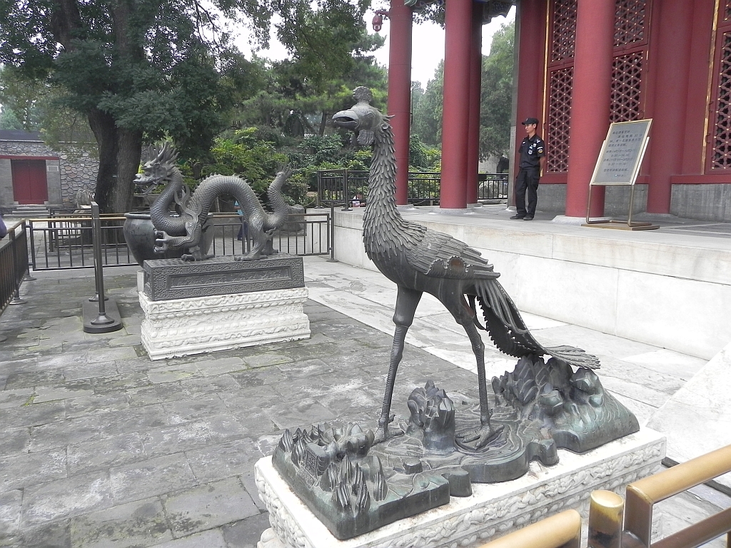 Der Sommerpalast wurde, wie gesagt, von Kaiser und Kaiserin als Sommerresidenz genutzt. Deshalb sind auch ein Drache (Zeichen für den Kaiser) und ein Pfau (Zeichen für die Kaiserin) vor der Halle der Freude und Langlebigkeit aufgestellt.
