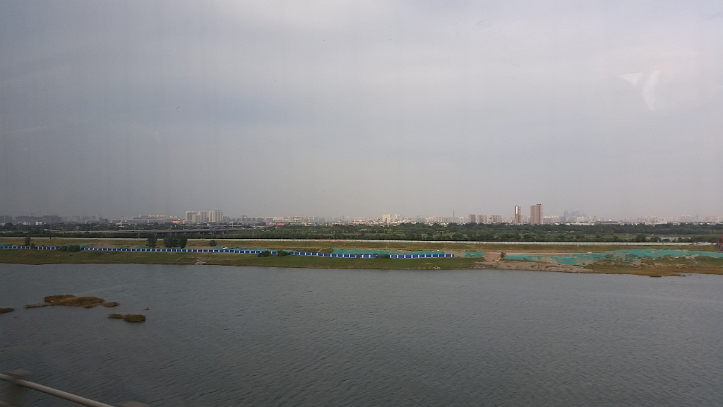 Nachdem wir unseren Platz eingenommen haben ging es auch pünktlich um 16 Uhr los. Draussen zogen die Aussenbezirke von Beijing vorbei und wurden langsam von Feldern abgelöst.
