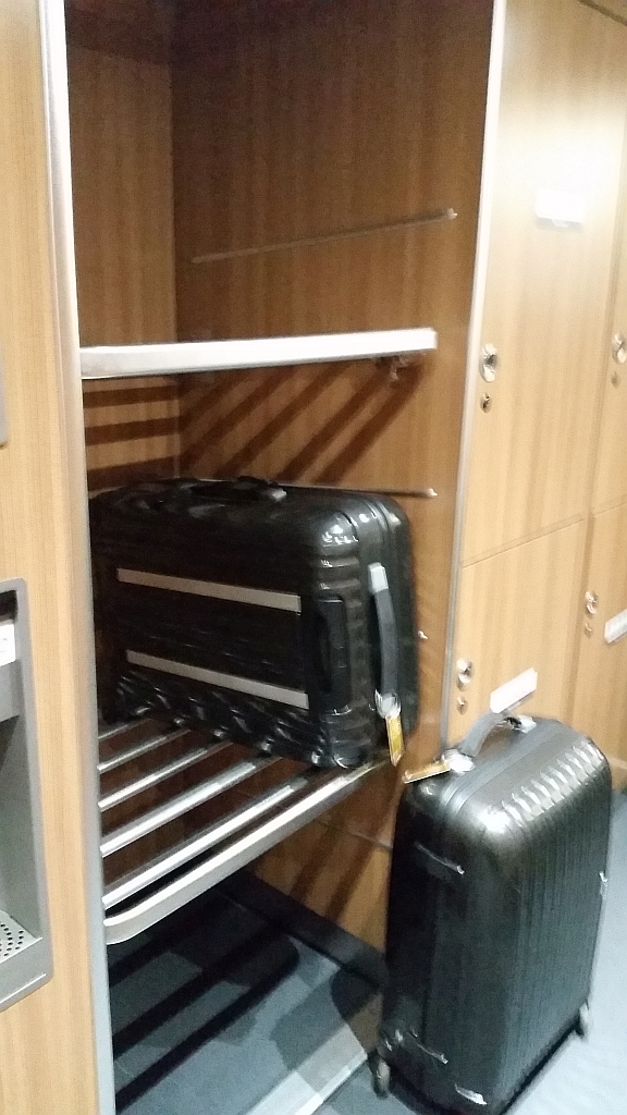 Die Koffer kann man übrigens bequem ablegen. Und wie eigentlich überall bekommt man auch Wasser gratis.