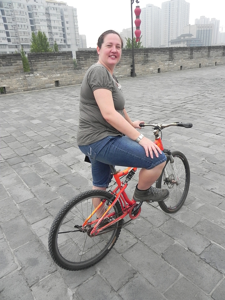 Auch wenn die Mauer recht eben aussieht: Die teilweise großen Löcher und die beiden … nicht TÜV-geprüften Fahrräder ohne Gangschaltung machten die Runde doch anstrengender als gedacht. Aber schön war es schon, vor allem wenn man auf die kleinen, alten Gebäude im Inneren der Mauer und die vielen Wolkenkratzer außerhalb der Mauer vergleicht.