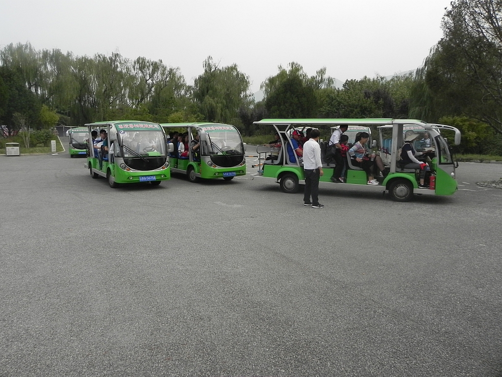 Vom Eingang aus kann man entweder zu Fuß oder mit einem Golfwagen zu den 4 Gruben fahren. Wir zogen, angesichts des Wetters, die faule Variante vor …