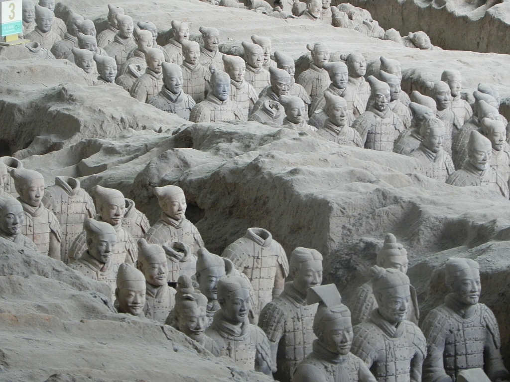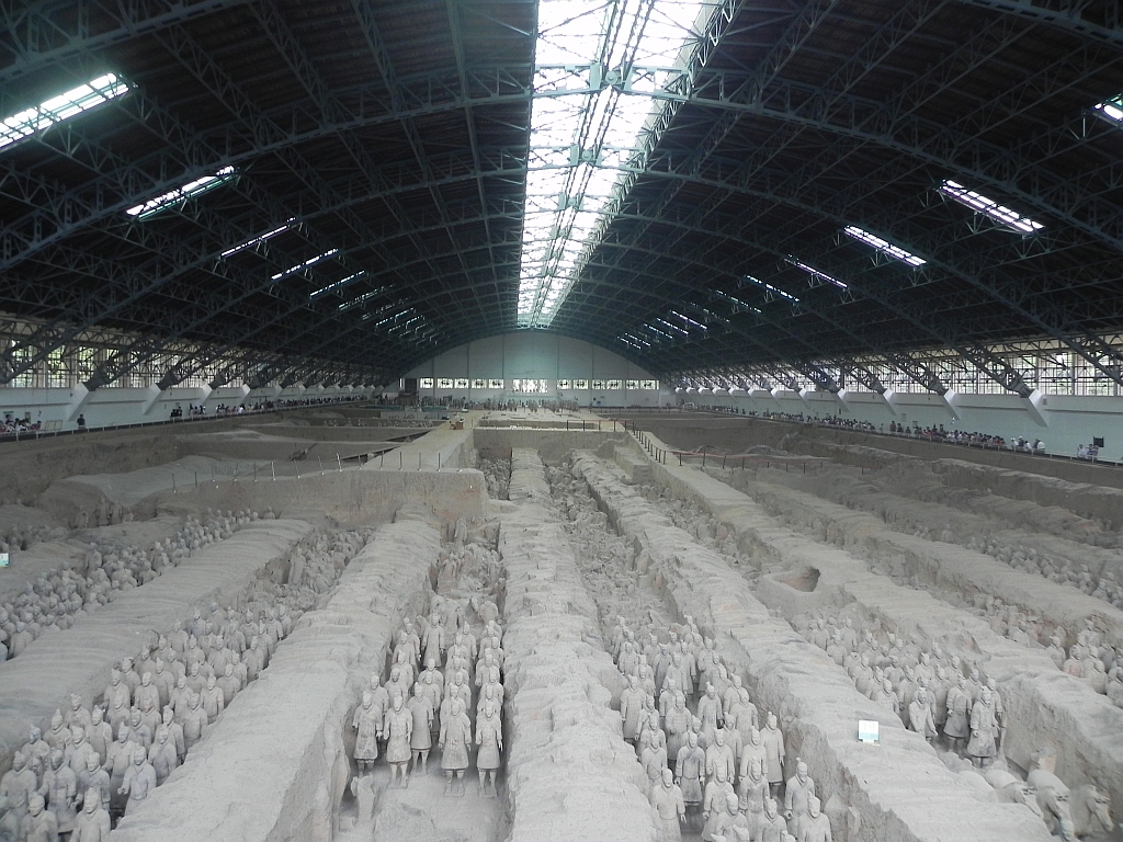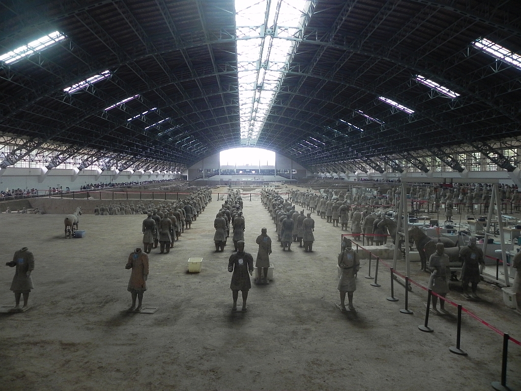 Die Terrakotta-Armee bezeichnet eine frühchinesische Grabanlage, errichtet für den ersten chinesischen Kaiser Qin Shihuangdi. Mit dem Bau wurde im Jahr 221 v. Chr. begonnen, und der Kaiser wurde im Jahre 210 v. Chr. darin beigesetzt. Es ist einer der weltweit größten Grabbauten und vor allem bekannt für seine großen Soldatenfiguren, eben halt die „Terrakotta-Armee“, welche seit 1987 ein Weltkulturerbe ist.
