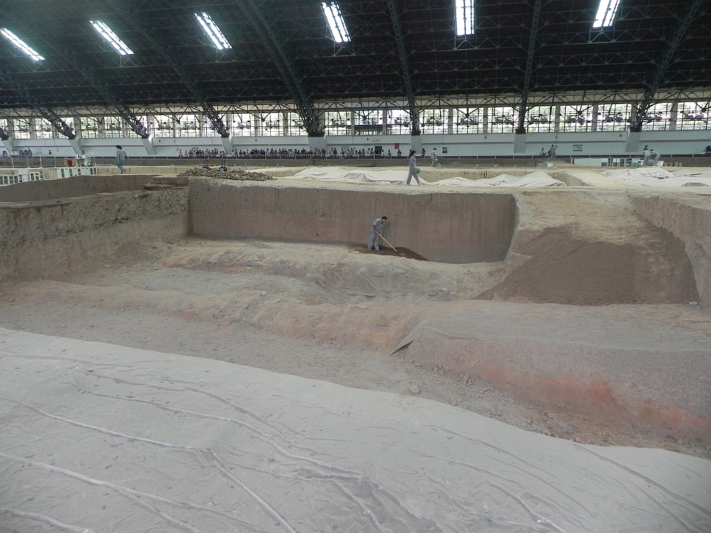 Bis heute ist etwa ein Viertel der gesamten Anlage komplett freigelegt worden. Der Grabhügel selbst ist archäologisch unangetastet. Chinesische Archäologen wollen ihn erst später öffnen.