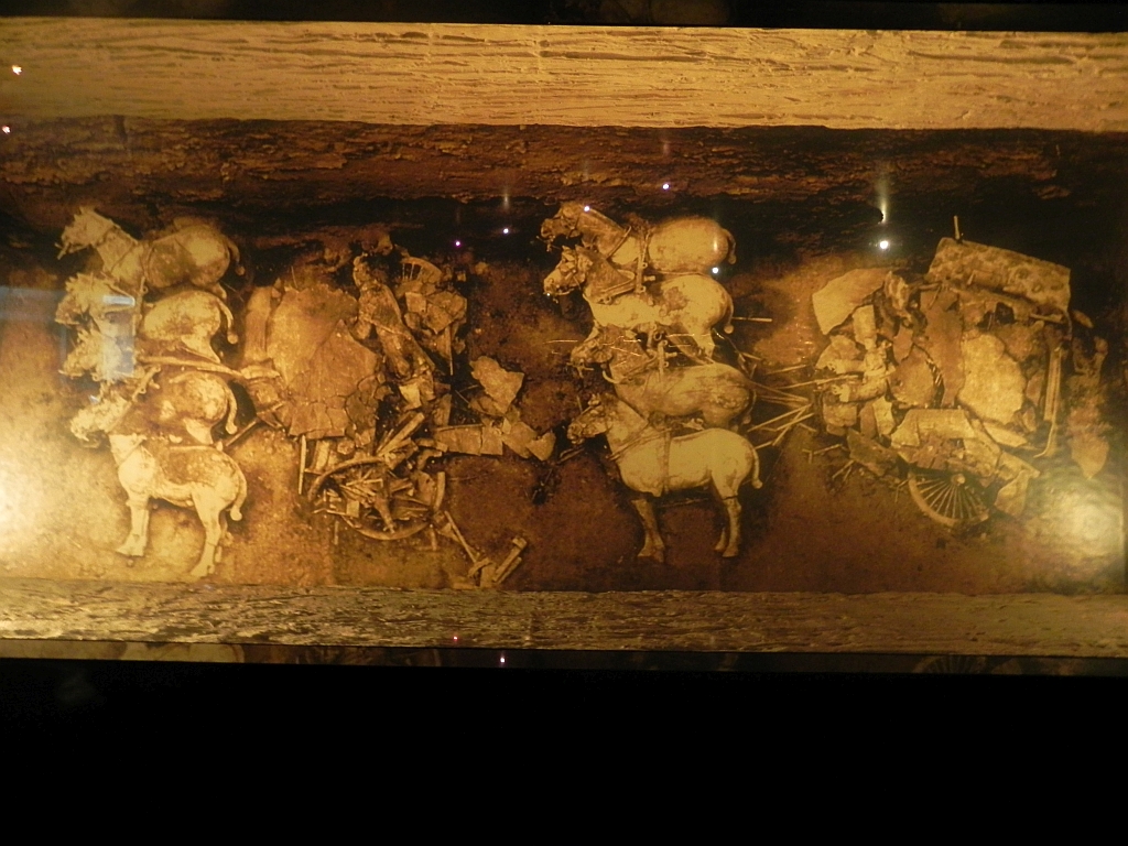 Im chinesischen Altertum setzte sich eine Armee aus drei Teilen und einem zusätzlichen Kommandostand zusammen, daher gibt es auch 4 Gruben, wobei die 3. der 4 Gruben leer geblieben ist. Die Menschen zu der Zeit glaubten daran, dass ihre Seelen nach dem Tod in einer anderen Welt existieren. Das Grab ist die Wohnstätte für die Seele – der Kaiser wollte, so vermutet man, all seinen Besitz nach seinem Tod bei sich haben. Daher gibt es auch über 500 Kammern mit Grabbeilagen.