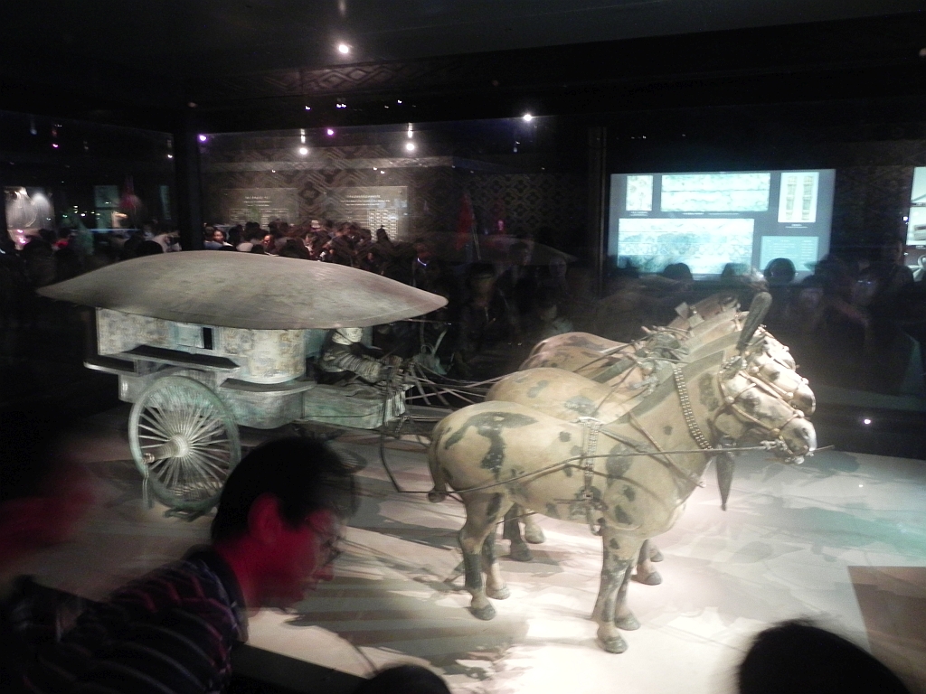 Die ausgegrabenen Grabwagen sind in einer Sonderaustellung zu besichtigen – leider sind auf die Idee auch viele der anderen Reisegruppen gekommen.