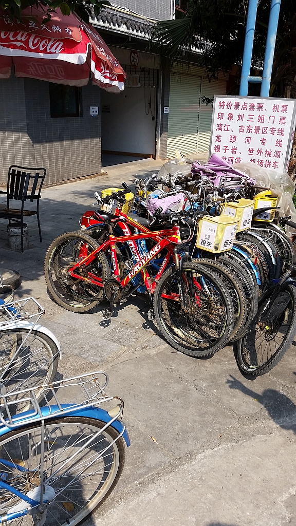In Yangshuo ist das Fahren mit dem Rad eine der beliebtesten Touristenaktivitäten, also hin zu dem Verleih. Glücklicherweise war dieser direkt neben dem Hotel, also nicht so weit zu laufen.
