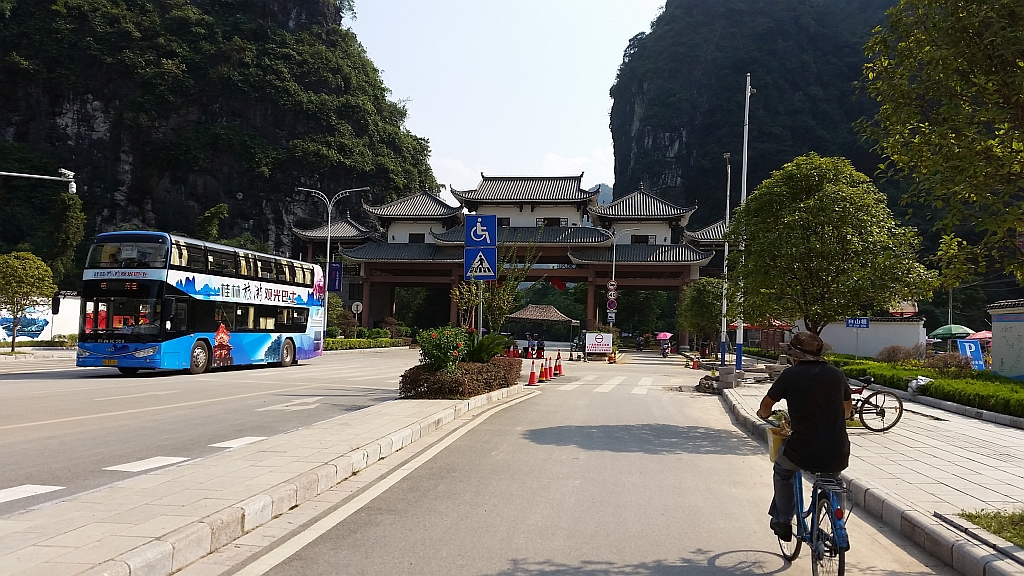 Hier dürfen nur Räder, Mopeds und ein paar Busse fahren. Die Strasse ab hier heisst „10 Meilen Galerie“ (Obwohl sie nur ein paar Kilometer lang ist) und man fährt quasi mitten durch die Karst-Berge hindurch.