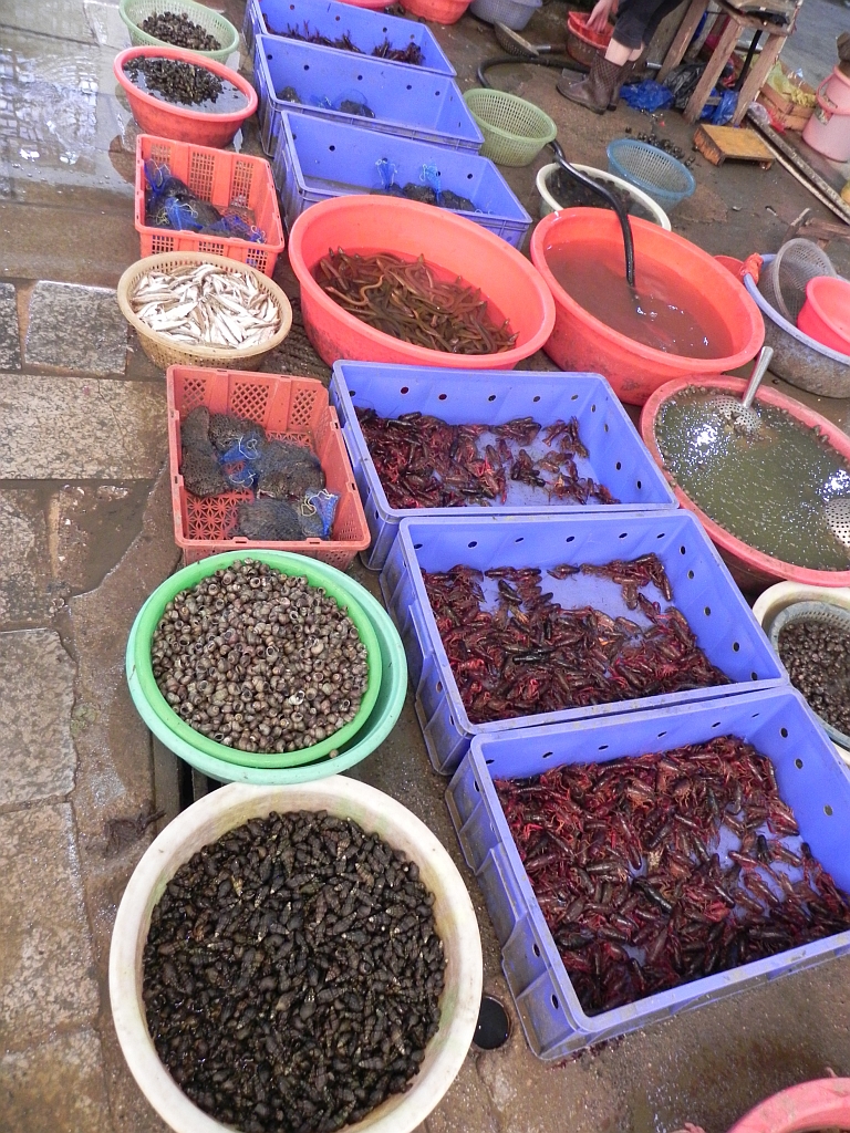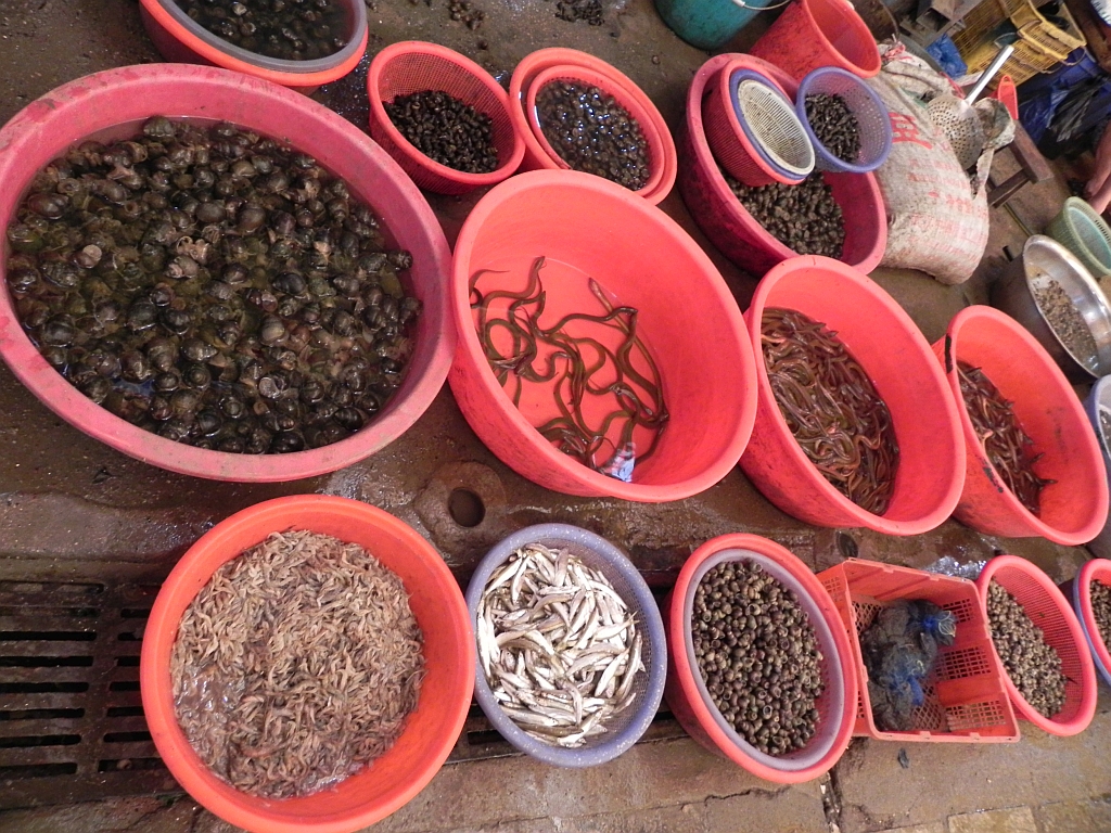 Der Fleisch-Markt wollten nur wenige besuchen. Dort waren die zu kaufenden Tiere teilweise zu lebendig zu besichtigen und im Hintergrund waren auch die vorher genannten Katzen und Hunde. Protein-Lieferanten halt.