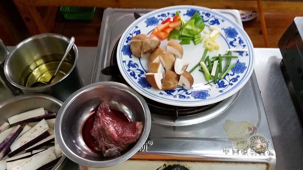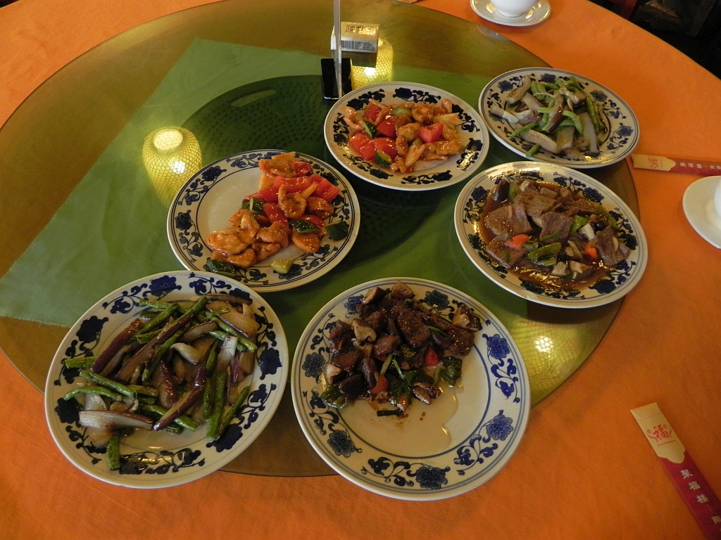 Das Essen heute ging in die Richtung „Hühnchen Süß-Sauer“, „Rindfleisch mit Gemüse“ und „Aubergiene mit Bohnen und Knoblauch“. Naja – das würde nicht so … neu werden..